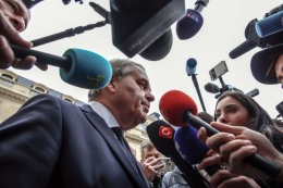 Mayor of Meaux Cope speaks to press outside the National Assembly in Paris