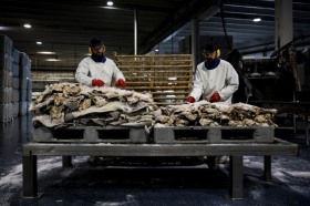 Processamento de pescado na empresa Leroy na ilha de Hitra na Noruega